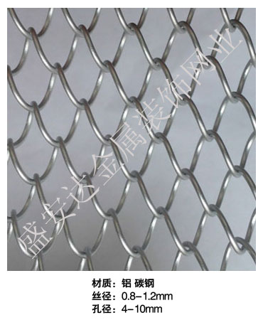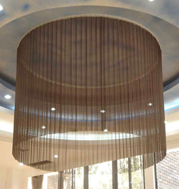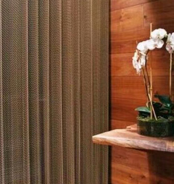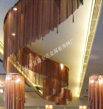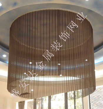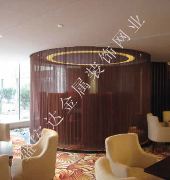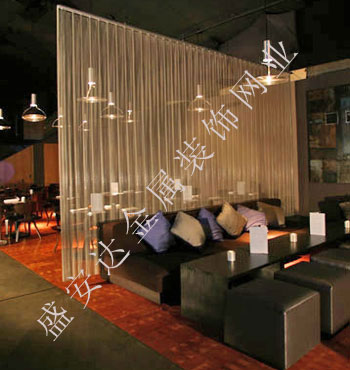 金屬網(wǎng)簾----是一種新型建筑裝飾材料,采用優(yōu)質(zhì)不銹鋼,鋁合金等合金材料,經(jīng)過特殊工藝編制而成,被賦予了傳統(tǒng)布簾所不具有的的折光效果,讓它具有了動感時尚的特點,再加上它的金屬質(zhì)感的特點,給您的居室頓感典雅氣質(zhì)非凡個性高貴品位,會使高檔賓館,餐廳,歌劇院,展廳變的富麗堂皇。