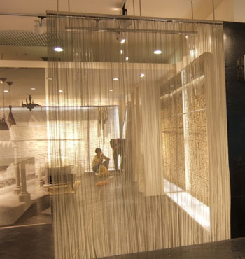 金屬網(wǎng)簾可被應(yīng)用于大尺寸的割斷或正面裝飾,亦可小面積的局部裝點。其天然金屬色澤隨著光線的不同變化余燈光產(chǎn)生的反射作用,透過金屬網(wǎng),形成一個隔而不斷的整體空間,給人以視覺上的開闊感,想象空間無限。